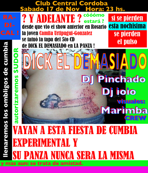 DICK EL DEMASIADO Y SUS EXAGERADOS y MAS BANDAS.27 DE NOVIEMBRE – 24 HS. – FIESTA REAL (cabe toda la cancha de river)